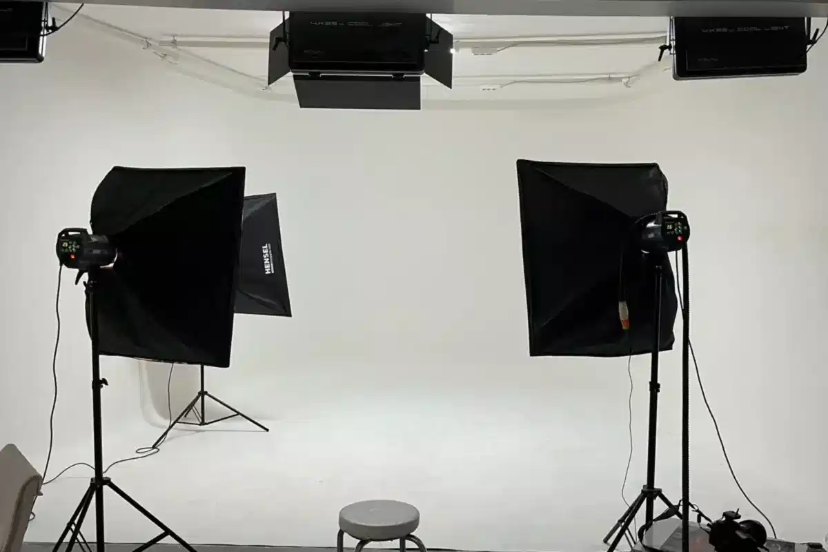 Profesyonel ekipmanlarla tam donanımlı bir çekim alanı: aydınlatma açısından ihtiyacınız olan her şeyi bulacaksınız. Size sonsuz bir yeşil (Greenbox) arka plan sunulur.
